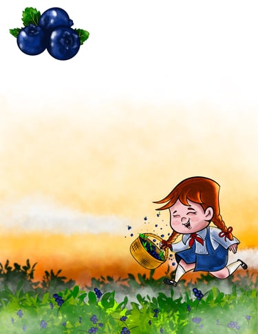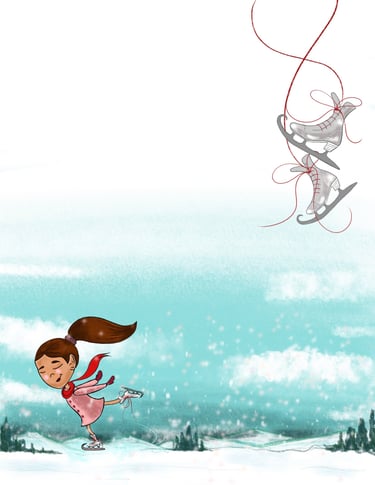 This series of digital illustrations was created for a 20-page children’s poetry book by Joan Gordan, celebrating the beauty of small, everyday moments. Each piece captures gentle scenes—skates gliding, blueberries gathered, and the soft chime of a cow’s bell on a quiet farm.