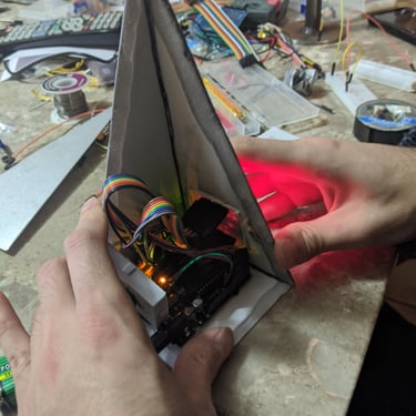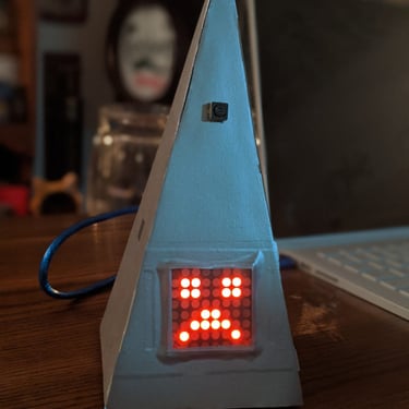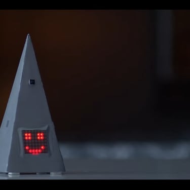 This AI model figure was designed as a conceptual, hand-built prototype for For Your Benefit, a sci-fi short film by Khizer Khani. Inspired by familiar home assistant devices, it takes on a more intimate and character-driven role—created specifically to guide and monitor weight loss.